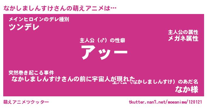 | 男性向けラノベタイトル風あだ名 | 『ナカシマシンスケアートオンライン』 |