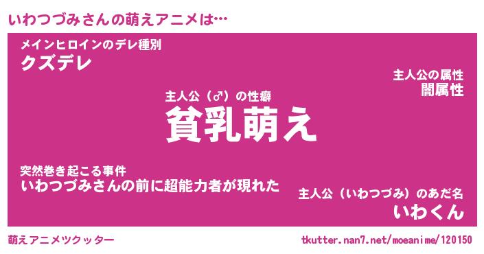 | 女子向けラノベタイトル風あだ名 | 『(仮)いわつづみのやんごとなき事情』 |