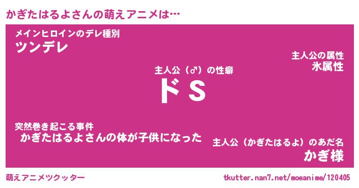 | 女子向けラノベタイトル風あだ名 | 『(仮)かぎたはるよのやんごとなき事情』 |