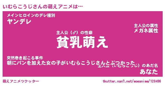| 女子向けラノベタイトル風あだ名 | 『(仮)いむらこうじのやんごとなき事情』 |
