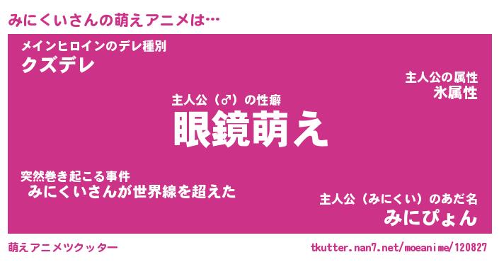 | 男性向けラノベタイトル風あだ名 | 『みにくいの憂鬱』 |
