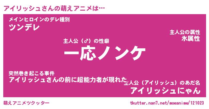 | 女子向けラノベタイトル風あだ名 | 『誰かこのアイリッシュを説明してください! ~契約から始まるウェディング~』 |