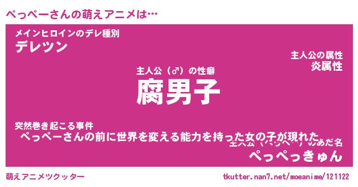 | 胡散臭い通販商品みたいなあだ名 | 『モテモテ間違いなし水晶球…その名も「ぺっぺー」』 |