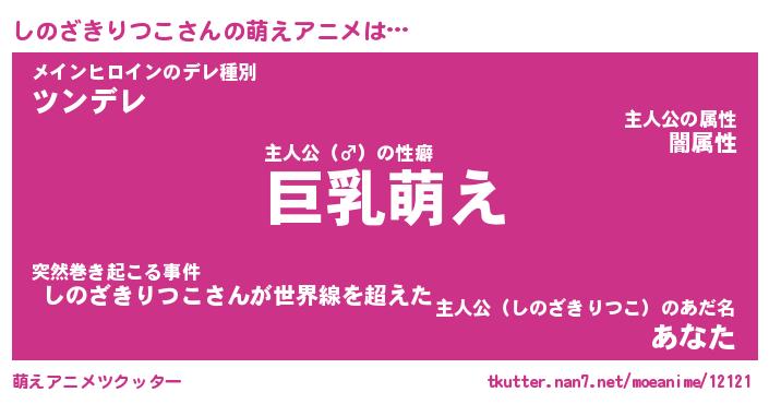 | 男性向けラノベタイトル風あだ名 | 『しのざきりつこの憂鬱』 |