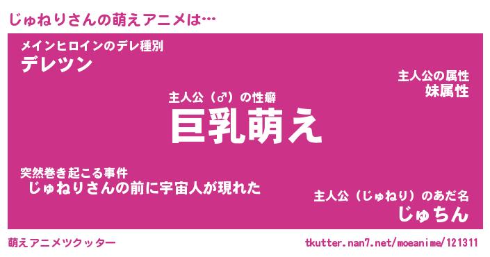 | 男性向けラノベタイトル風あだ名 | 『じゅねりの憂鬱』 |