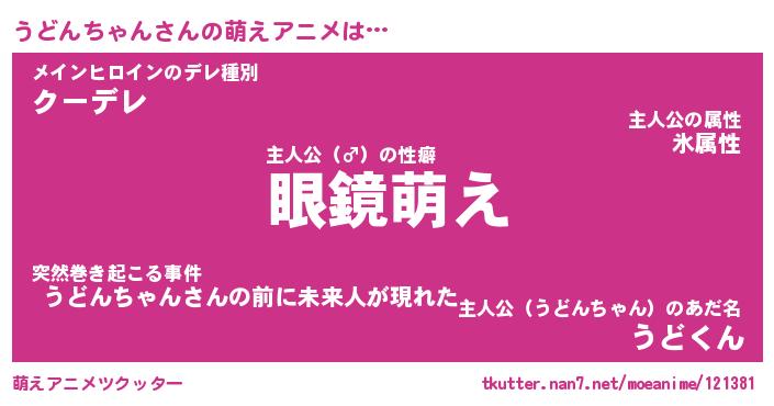| 男性向けラノベタイトル風あだ名 | 『うどんちゃんの憂鬱』 |