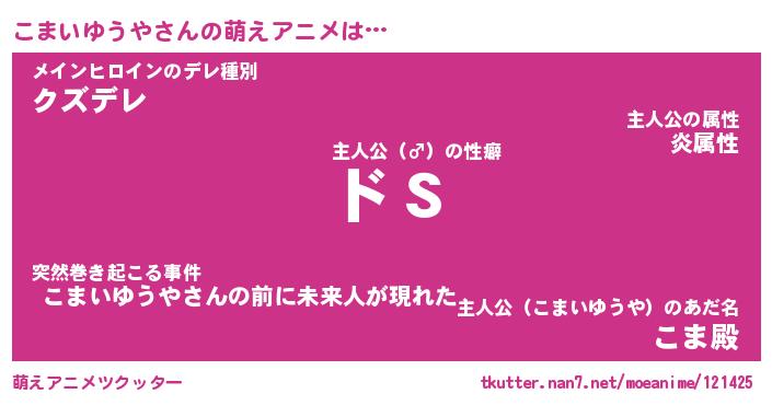 | ヒーロー風カッコイイあだ名 | 『スーパーコマイユウヤ』『幻影騎士コマ』 |