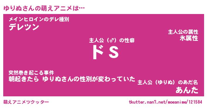 | 男性向けラノベタイトル風あだ名 | 『ゆりぬの憂鬱』 |