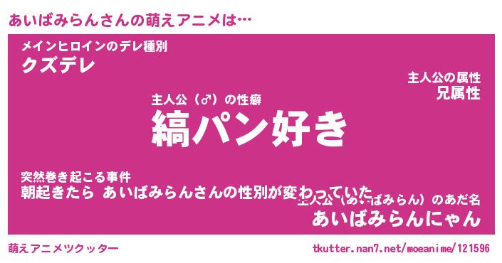 | 男性向けラノベタイトル風あだ名 | 『あいばみらんの憂鬱』 |