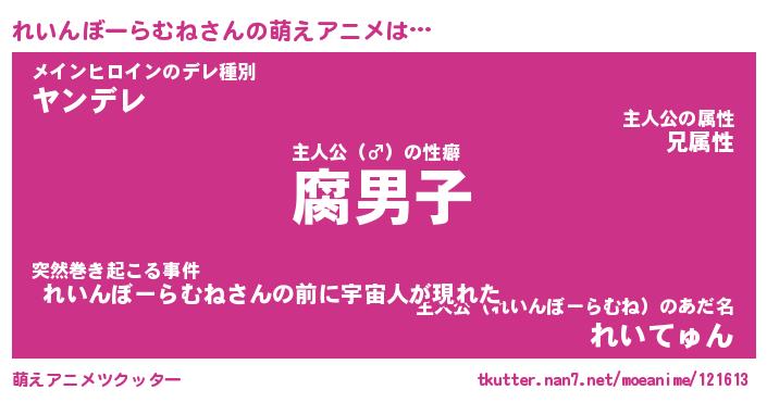 | 胡散臭い通販商品みたいなあだ名 | 『モテモテ間違いなし水晶球…その名も「れいんぼーらむね」』 |
