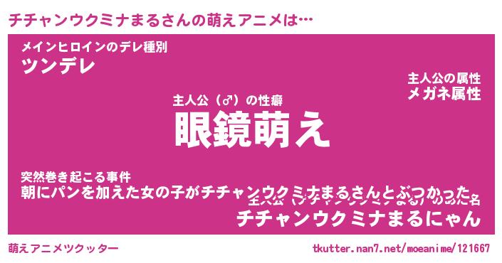 | 男性向けラノベタイトル風あだ名 | 『チチャンウクミナまるの憂鬱』 |