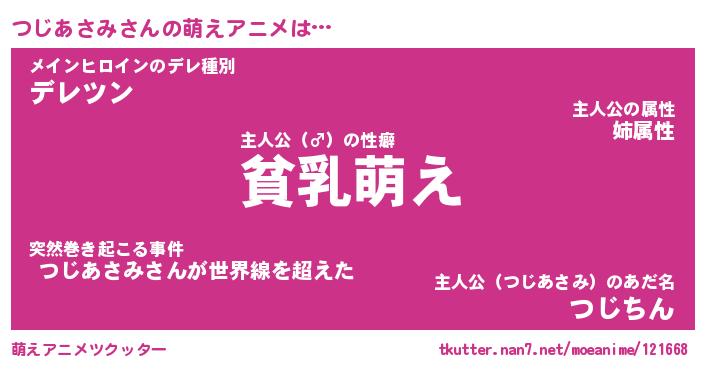 | 男性向けラノベタイトル風あだ名 | 『つじあさみの憂鬱』 |