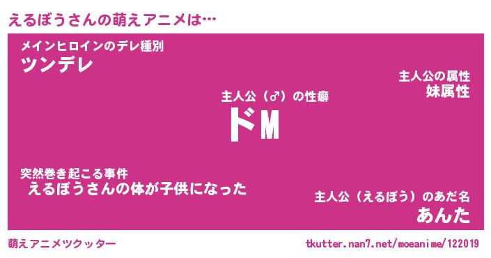 | 男性向けラノベタイトル風あだ名 | 『えるぼうの憂鬱』 |