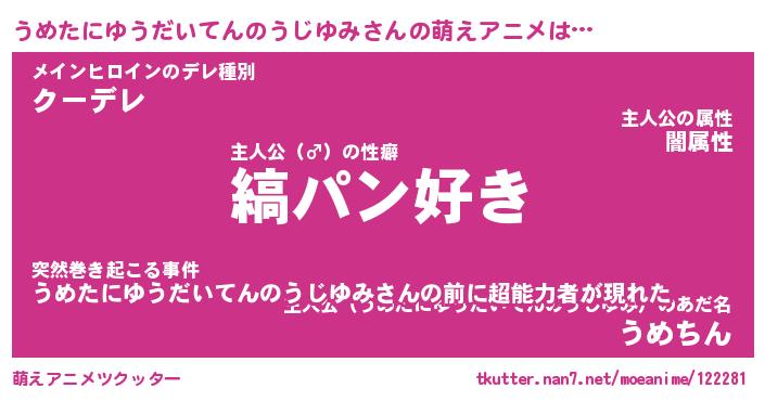 | 男性向けラノベタイトル風あだ名 | 『うめたにゆうだいてんのうじゆみの憂鬱』 |