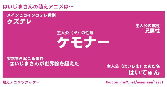 | ヘコむあだ名 | 『はいにー』『牛乳』『はいぷりん』 |