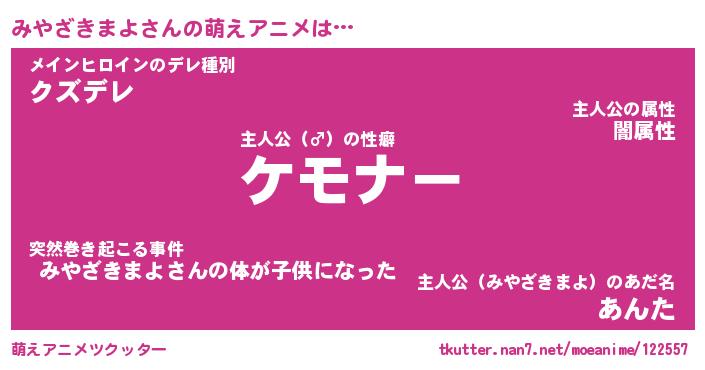 | 女子向けラノベタイトル風あだ名 | 『誰かこのみやざきまよを説明してください! ~契約から始まるウェディング~』 |