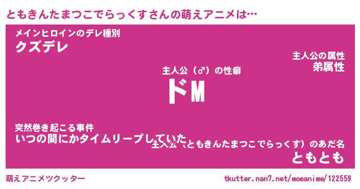 | 男性向けラノベタイトル風あだ名 | 『ともきんたまつこでらっくすの憂鬱』 |