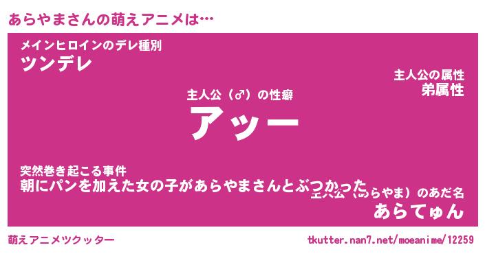 | 女子向けラノベタイトル風あだ名 | 『誰かこのあらやまを説明してください! ~契約から始まるウェディング~』 |