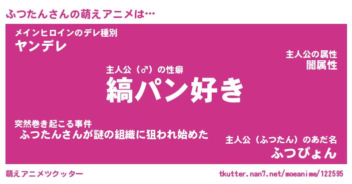 | 男性向けラノベタイトル風あだ名 | 『ふつたんの憂鬱』 |