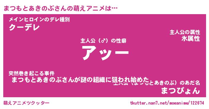| 女子向けラノベタイトル風あだ名 | 『誰かこのまつもとあきのぶを説明してください! ~契約から始まるウェディング~』 |