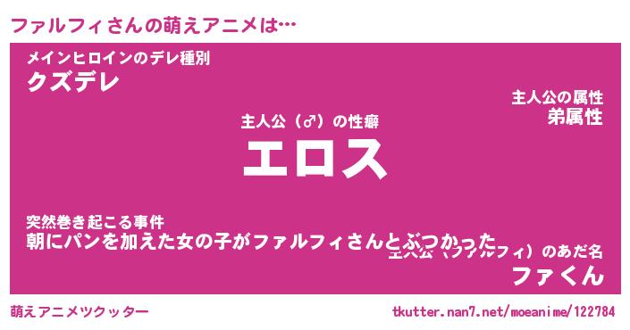 | 女子向けラノベタイトル風あだ名 | 『誰かこのファルフィを説明してください! ~契約から始まるウェディング~』 |