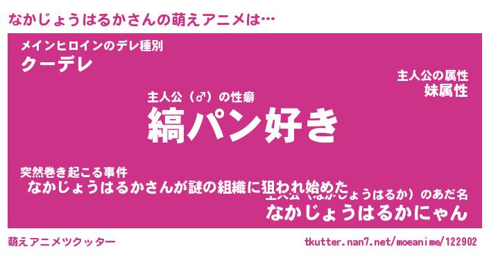 | 女子向けラノベタイトル風あだ名 | 『(仮)なかじょうはるかのやんごとなき事情』 |
