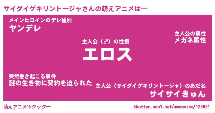 | 女子向けラノベタイトル風あだ名 | 『誰かこのサイダイゲキリントージャを説明してください! ~契約から始まるウェディング~』 |