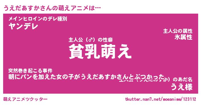 | ヘコむあだ名 | 『うえにー』『つくし』『うえぷりん』 |