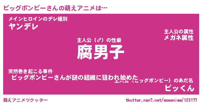 | 男性向けラノベタイトル風あだ名 | 『ビッグボンビーアートオンライン』 |