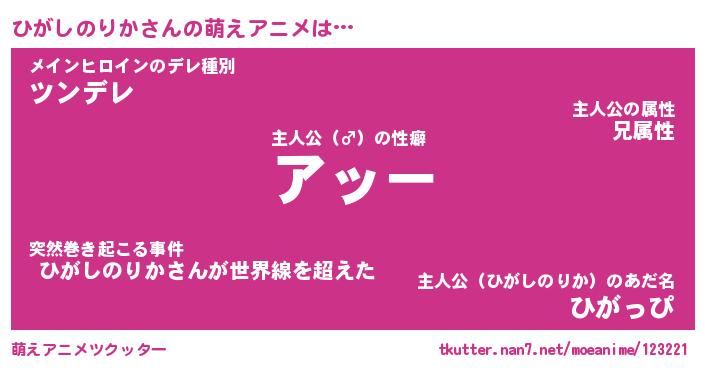 | 男性向けラノベタイトル風あだ名 | 『ヒガシノリカアートオンライン』 |