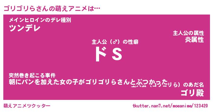 | 男性向けラノベタイトル風あだ名 | 『ゴリゴリらの憂鬱』 |