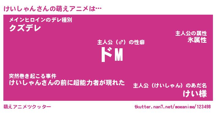 | 男性向けラノベタイトル風あだ名 | 『けいしゃんの憂鬱』 |