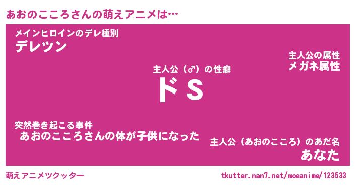 | 男性向けラノベタイトル風あだ名 | 『あおのこころの憂鬱』 |