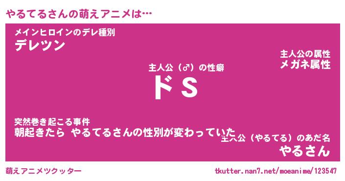 | 男性向けラノベタイトル風あだ名 | 『やるてるの憂鬱』 |