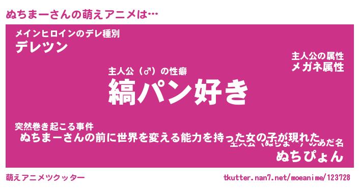 | 男性向けラノベタイトル風あだ名 | 『ぬちまーの憂鬱』 |