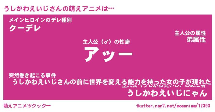 | 女子向けラノベタイトル風あだ名 | 『誰かこのうしかわえいじを説明してください! ~契約から始まるウェディング~』 |