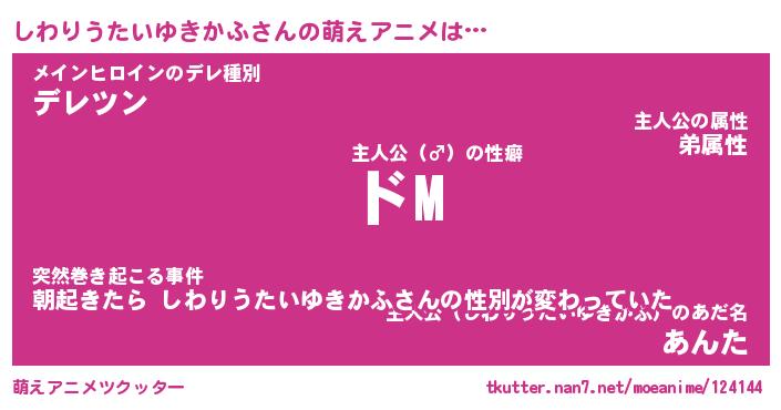 | 男性向けラノベタイトル風あだ名 | 『しわりうたいゆきかふの憂鬱』 |