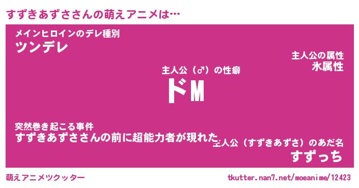 | 男性向けラノベタイトル風あだ名 | 『すずきあずさの憂鬱』 |