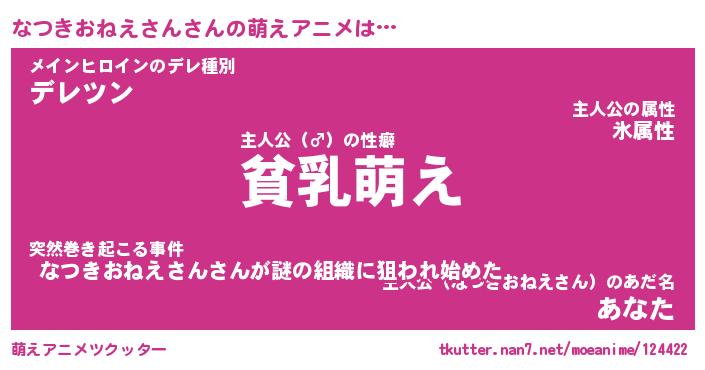 | 男性向けラノベタイトル風あだ名 | 『なつきおねえさんの憂鬱』 |