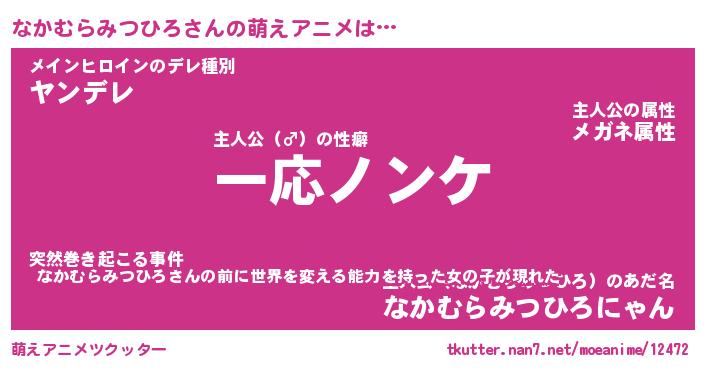 | 女子向けラノベタイトル風あだ名 | 『誰かこのなかむらみつひろを説明してください! ~契約から始まるウェディング~』 |