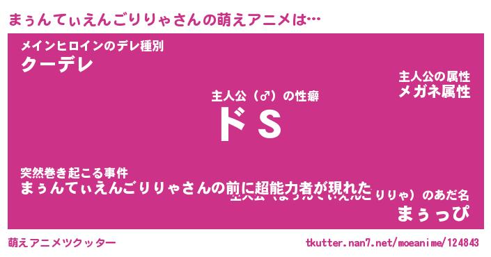 | 胡散臭い通販商品みたいなあだ名 | 『必ず成功するブレスレット…その名も「まぅんてぃえんごりりゃ」』 |