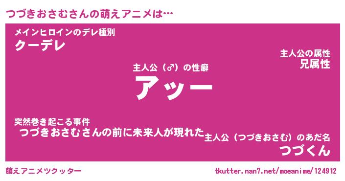 | 男性向けラノベタイトル風あだ名 | 『ツヅキオサムアートオンライン』 |
