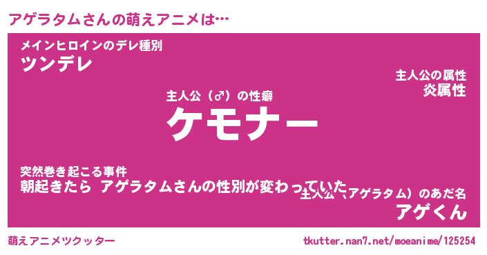 | ファンタジー風あだ名 | 『アゲフェル』『エターナルアゲラタムー』 |