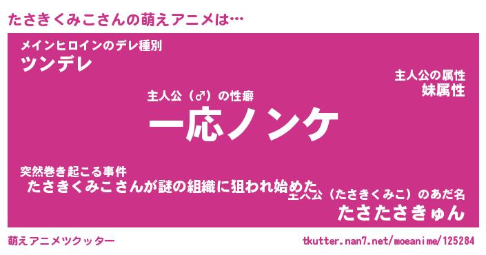 | 男性向けラノベタイトル風あだ名 | 『タサキクミコアートオンライン』 |