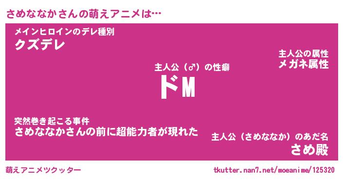 | 胡散臭い通販商品みたいなあだ名 | 『必ず成功する水晶球…その名も「さめななか」』 |
