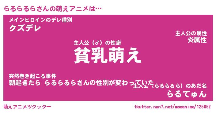 | 肩書あだ名 | 『らるらるら御曹司』『らるらるら団長』 |