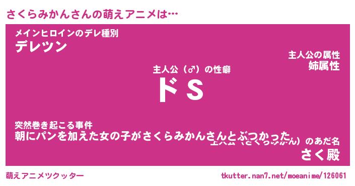 | 男性向けラノベタイトル風あだ名 | 『さくらみかんの憂鬱』 |