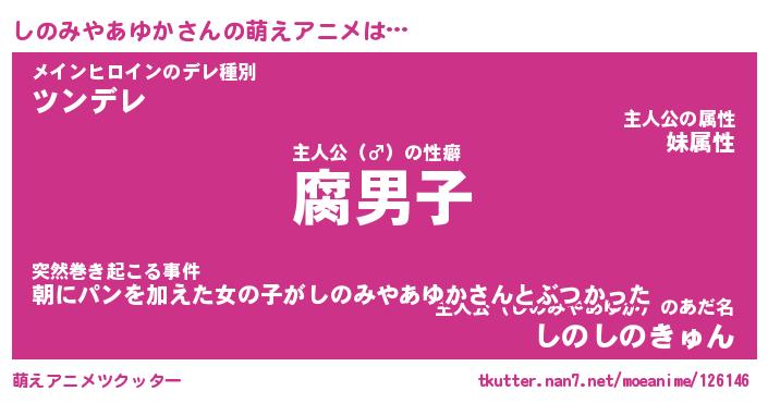 | 胡散臭い通販商品みたいなあだ名 | 『モテモテ間違いなしブレスレット…その名も「しのみやあゆか」』 |