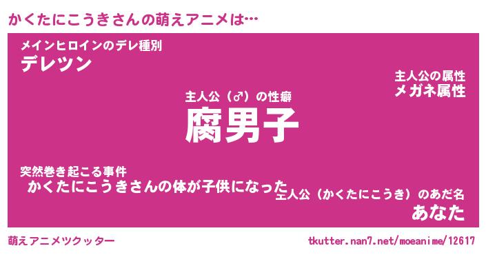 | 女子向けラノベタイトル風あだ名 | 『かくたにこうき姫と円卓の騎士』 |