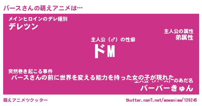 | 男性向けラノベタイトル風あだ名 | 『バースの憂鬱』 |